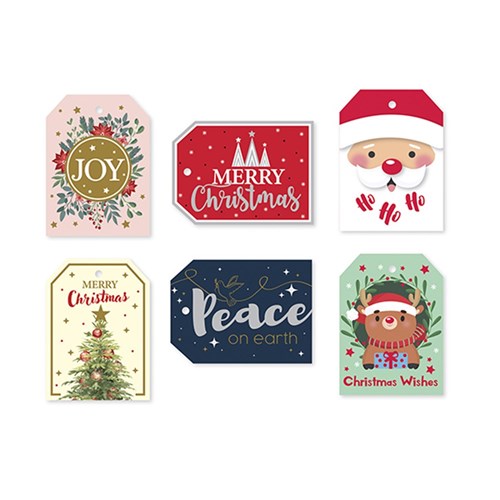 Gift Tags Xmas w Foil Strings 30pk