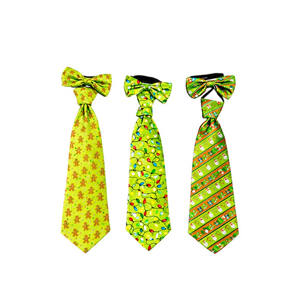 Grumble Xmas Novelty Tie w Bow 43cm 3 Asst