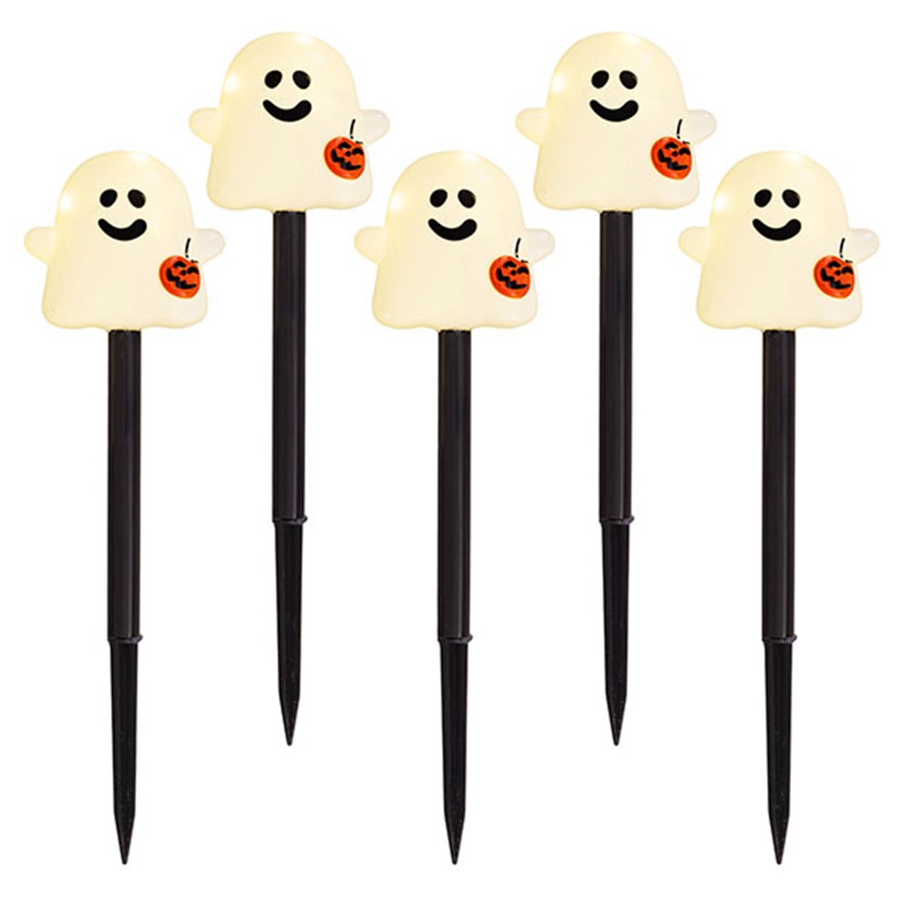 Halloween Ghost Stake Lights 30L Pk5 2F Solar PDQ -
