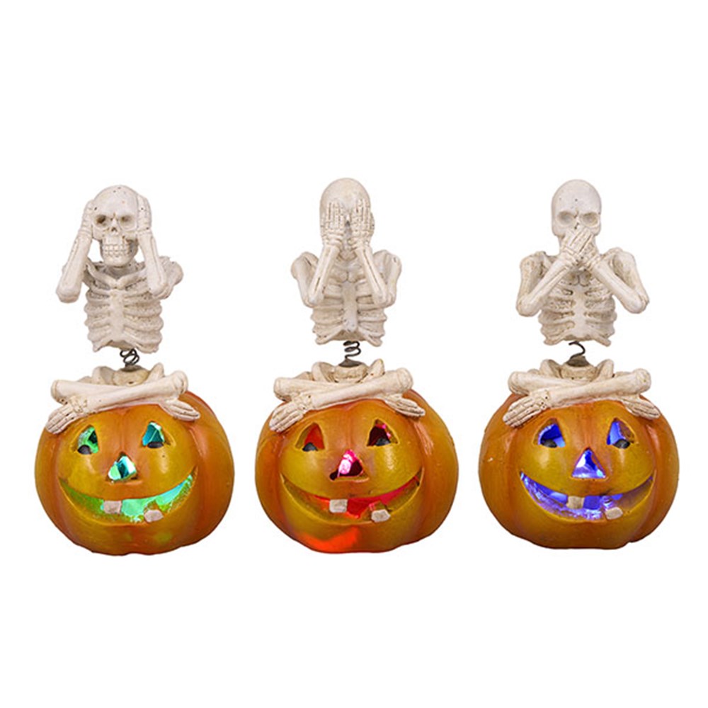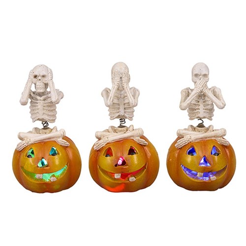 Halloween Light Skeleton On Pumpkin 1L RGB Solar 3 Asstd -