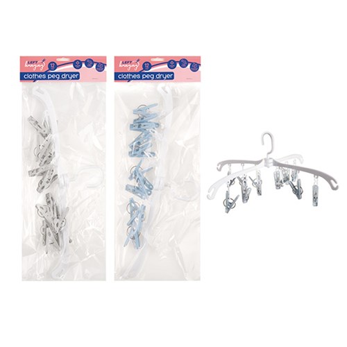 Hanger Clothes Airer Plastic 12 Pegs 2 Asstd Cols