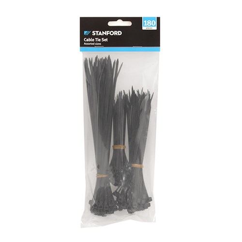 Cable Ties Black 180Pk Asstd Sizes