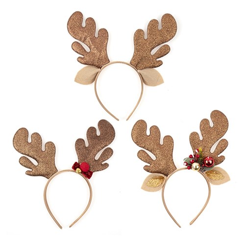 Headband Novelty Xmas 3 Asst Antler Designs