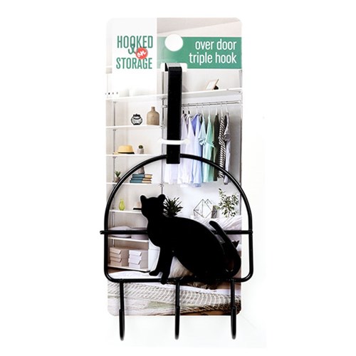 Hook Over The Door 3 Prong Steel w Cat Design 15x9cm