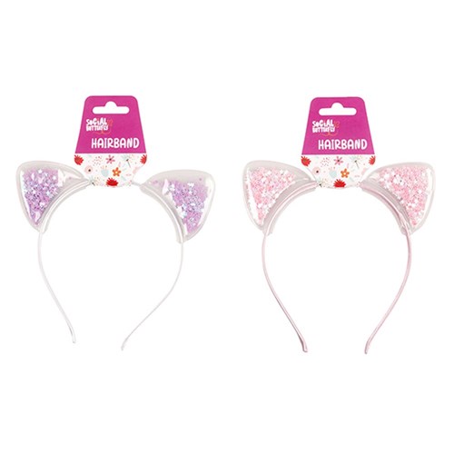 Kids Club Hair Headband w Glitter Ears 2 Asst Cols