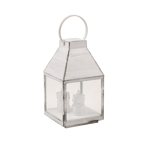Light Lantern H25cm w 3 Small Candles W.White B/OP -