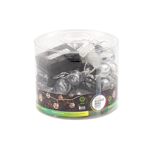 Lights Ball Acrylic Warm White 2F Solar/USB Pk50 -