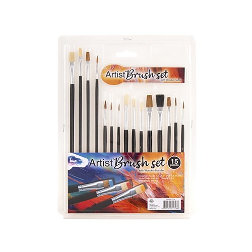 Brushes Paint 15Pc Set Asstd Sizes w Wooden Handle