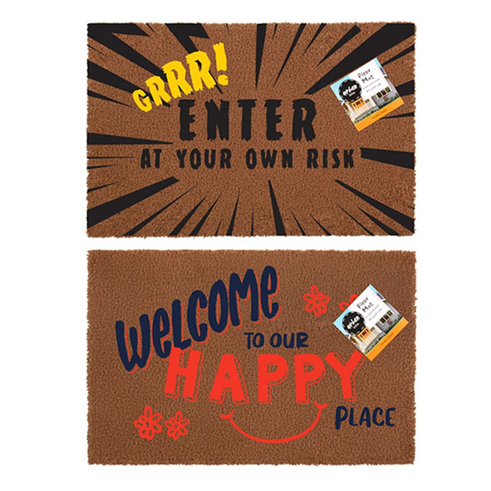 Mat Coir 2 Design Multi Col Rubber Backed 40x60cm