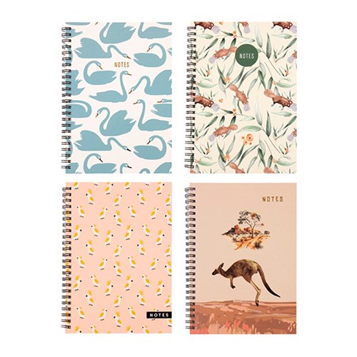 Notebook Card Cover Printed Spiral Australiana 4 Asstd A5