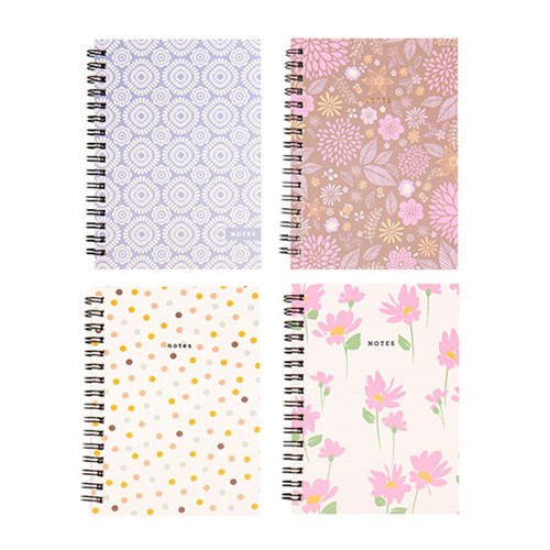 Notebook Card Cover Printed Spiral 4 Asstd A6 120pg