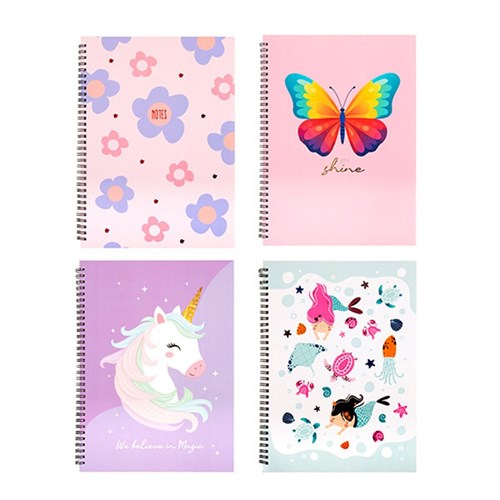 Notebook Card Cover Printed Spiral Girls Des 4Ast A4 120pg