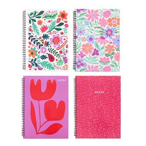 Notebook Hard Cover Printed Spiral Floral 4 Asstd A4 120pg