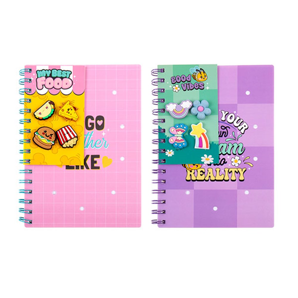 Notebook PP Cover Printed Spiral w 4 Charms Girl Design