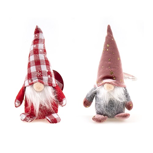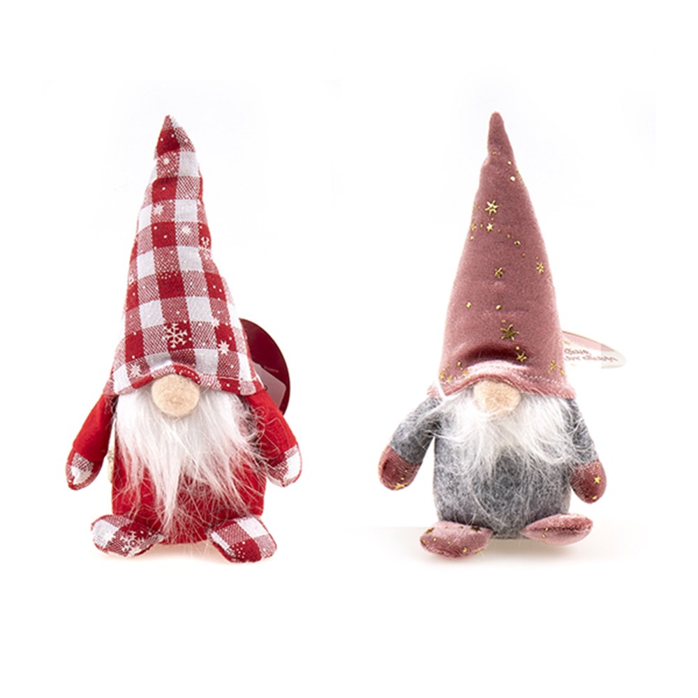 Plush Xmas Gnome Sitting Toy 5x17cm 2 Asst -