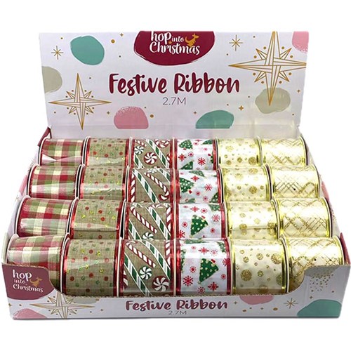 Ribbon Printed Xmas 2.7m 6 Asst -