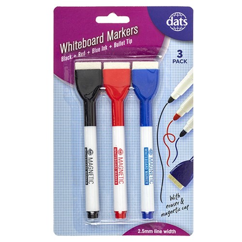 Marker Whiteboard 3pk Mixed Black Blue Red Ink w Erasers