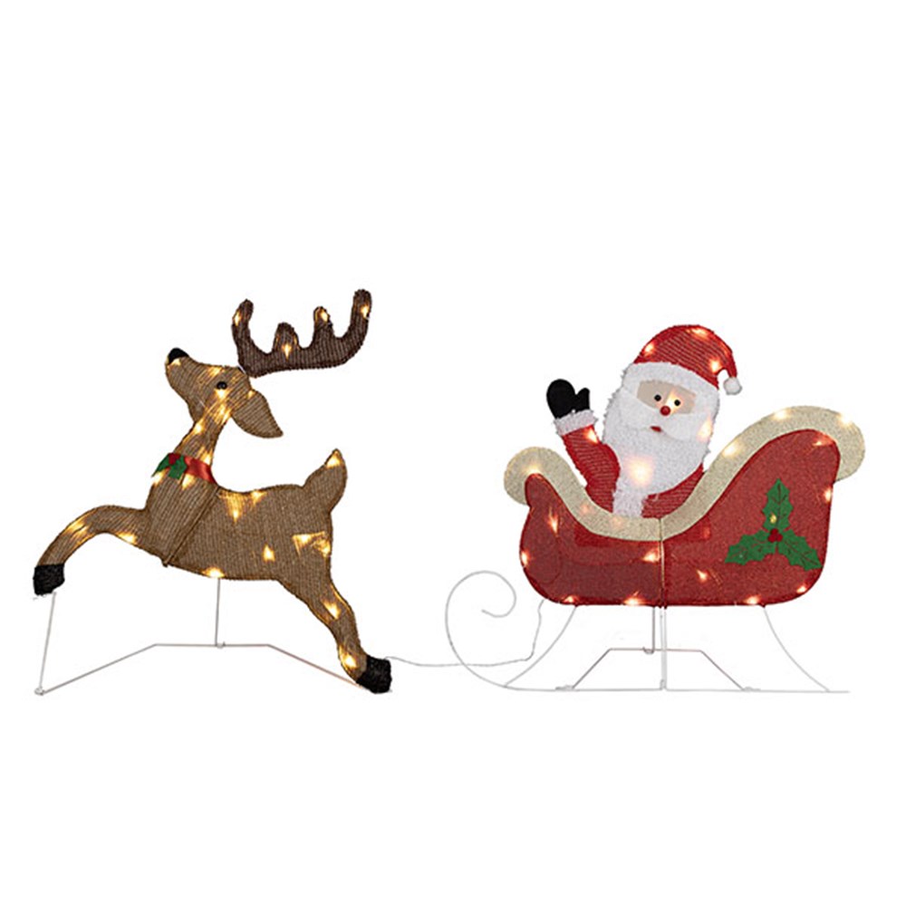 Sled Santa w Reindeer 2D 50L W.White H55cm B/OP Pk2