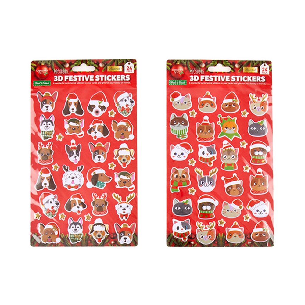 Stickers Xmas 3D 24pk 2 Asst -