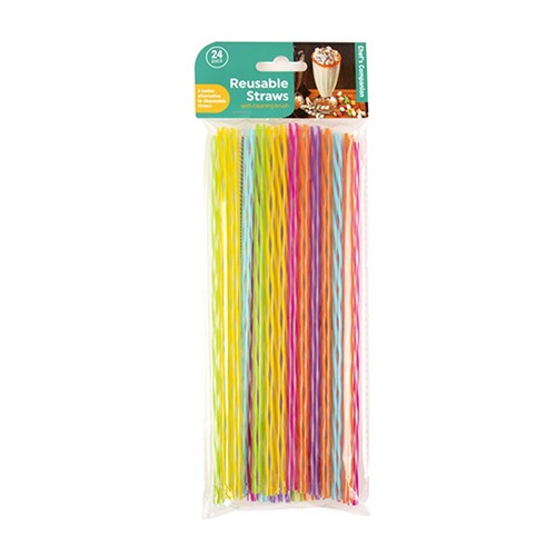 Straws Reusable 4 Asst Straight w Cleaner 24pk 25cm