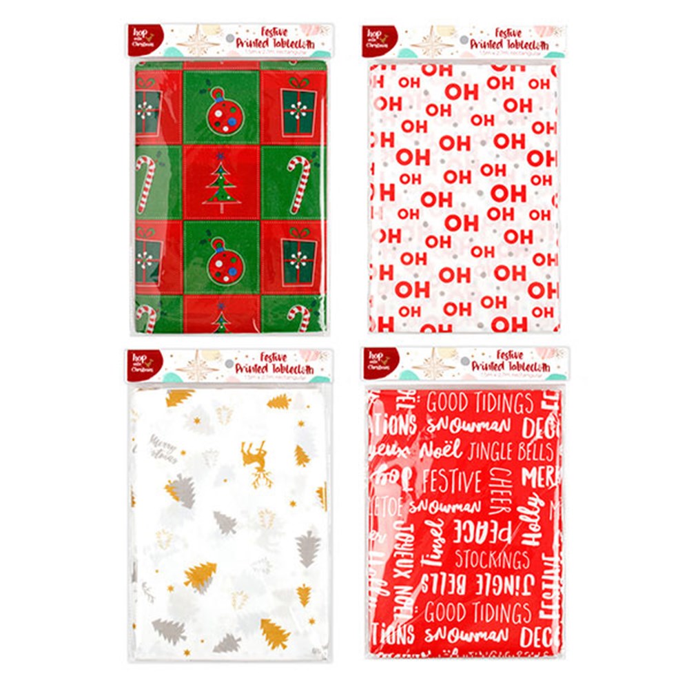 Tablecloth Xmas 150x270cm PEVA w Flannel Backing 4 Asstd