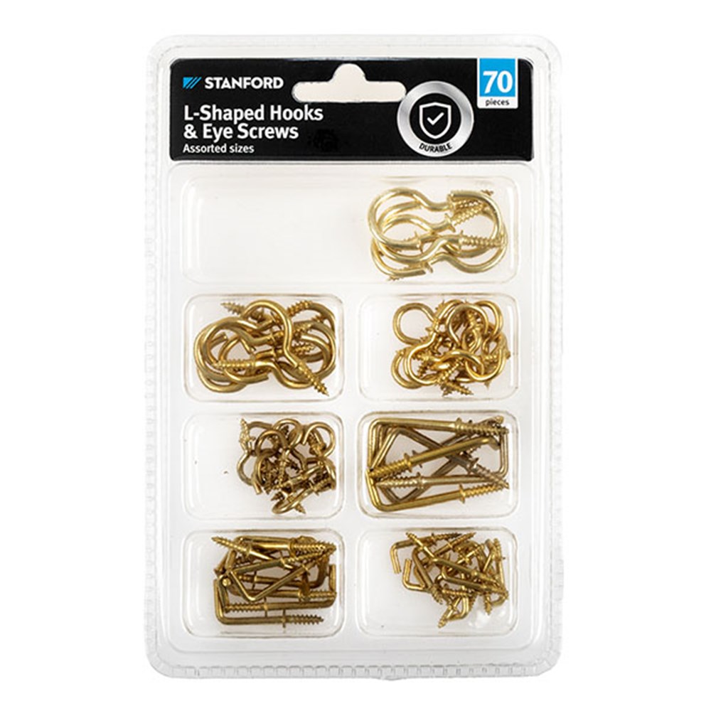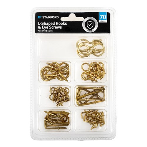 Pre-Pack Hooks L-shaped & Eye Screws Asstd 70Pk