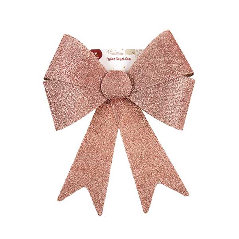 Tinsel Xmas Bow 39x49x13cm Rose Gold