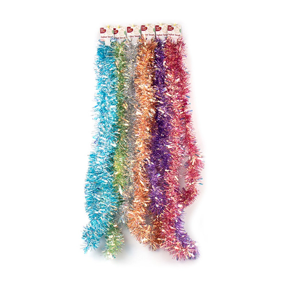 Tinsel Xmas Garland Metallic 2M 6 Asst -