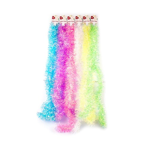 Tinsel Xmas Garland Snowy Pastel 2M 6 Asst -