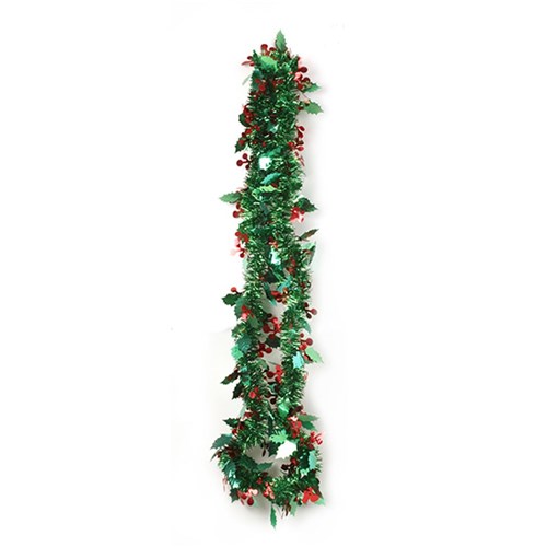 Tinsel Xmas Garland w Holly Berries & Leaves 2m -