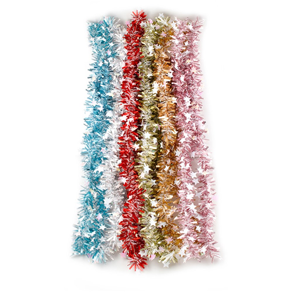 Tinsel Xmas Garland w Stars 2m 6 Asst Cols