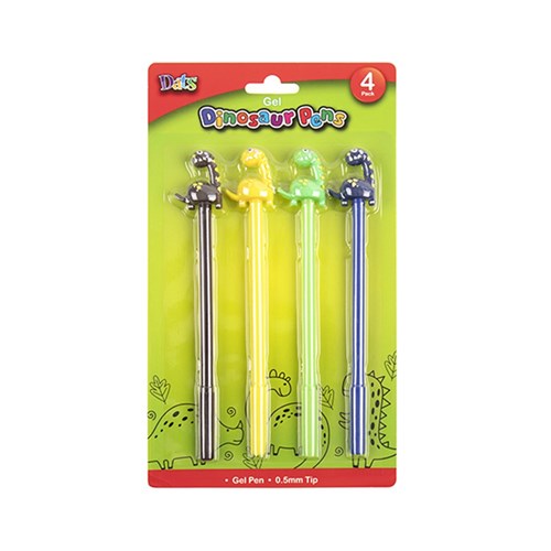 Pen Gel 4pk Dinosaur Design 4 Asstd Colours