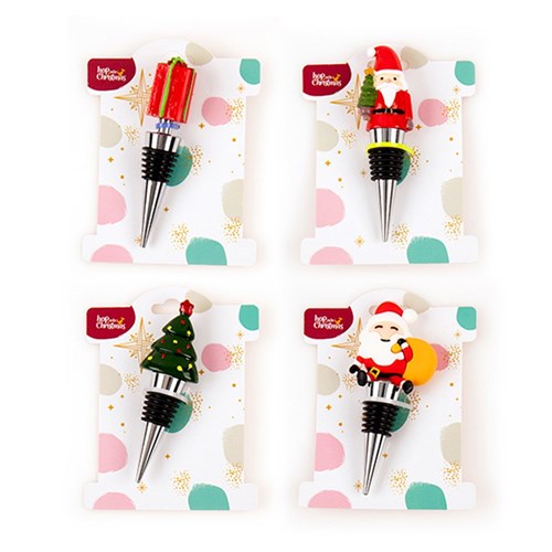 Xmas Bottle Wine Stopper 4 Asst PDQ