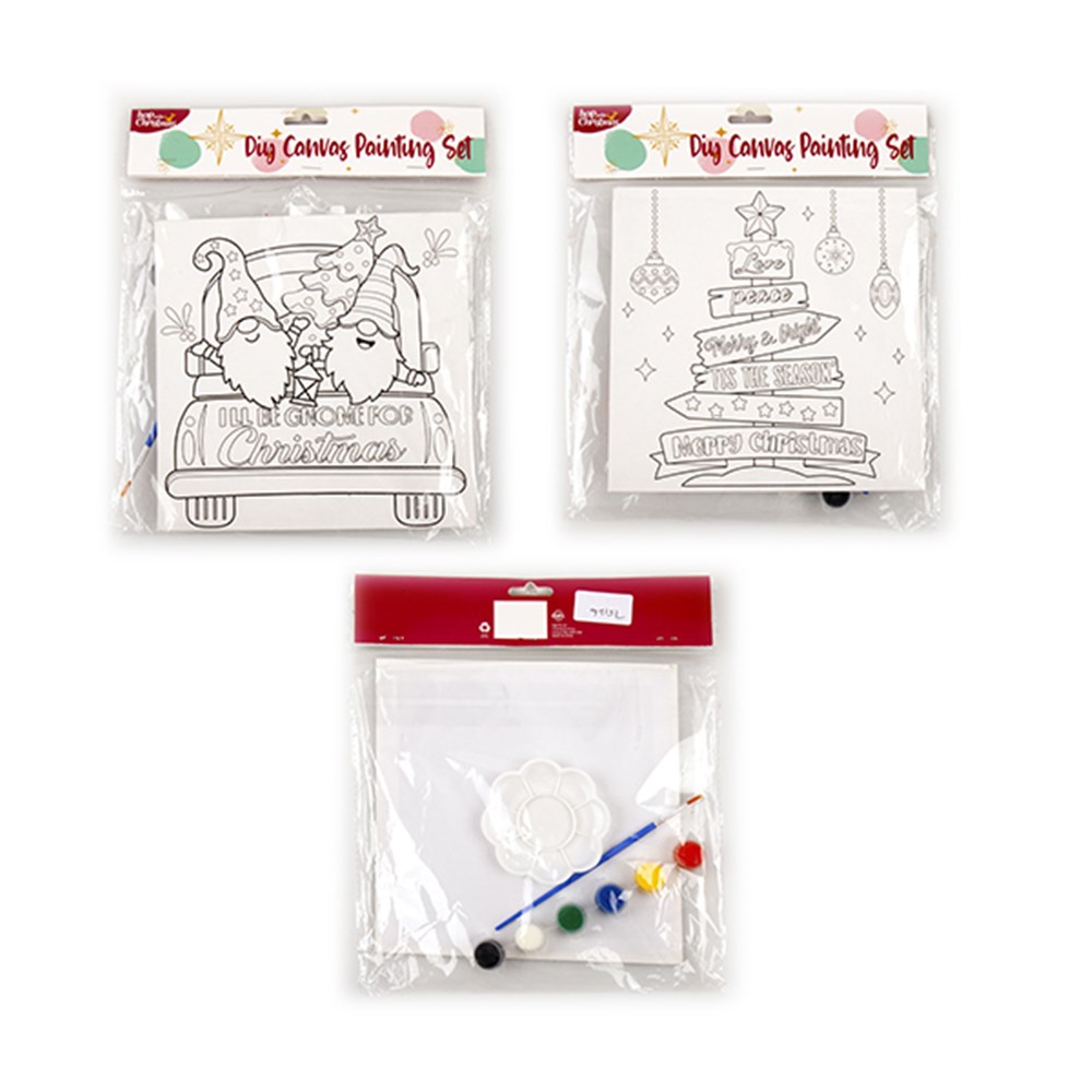 Xmas Canvas DIY Colour w Paint 20x20cm 2 Asst -