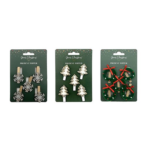 Xmas Pegs Mini Wooden 5pk 3 Asst